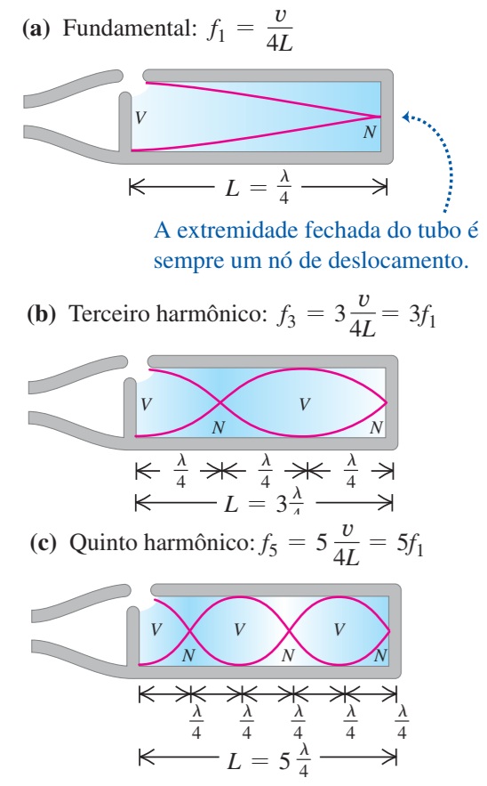 A formação de ondas estacionárias em instrumentos de tubos aberto em uma extremidade e fechado na outra, nos dará